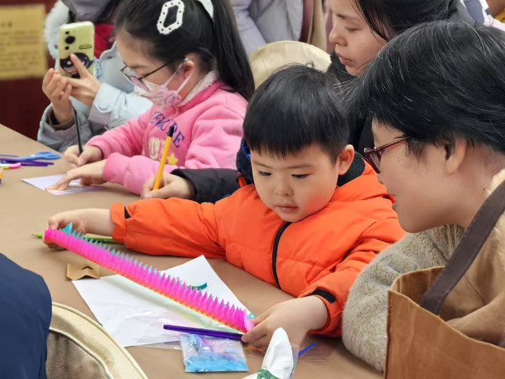 红似烈火、粉若云霞、黄像骄阳……色彩明艳的纸翻花在孩子手中不断变幻,也勾起家长们的童年回忆。2月4日上午,正月初七,百余人在中国妇女儿童博物馆参加指尖繁花·非遗翻花趣享会,在亲子互动中体验非遗的魅力。